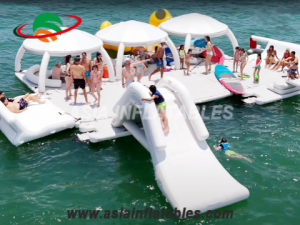 Plataforma inflable de ocio acuático de nuevo diseño con carpa, equipo de entretenimiento acuático, isla flotante